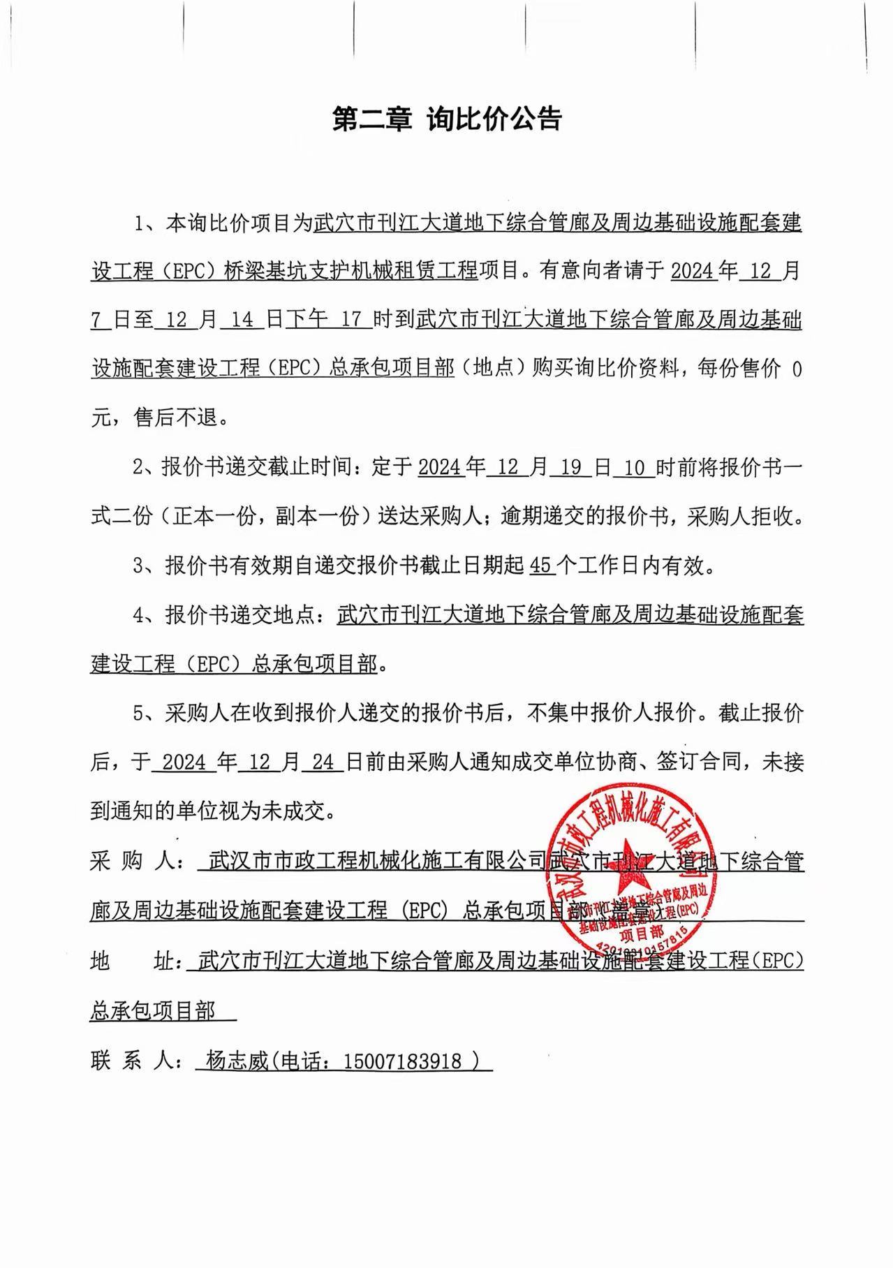 武穴市刊江大道地下綜合管廊及周邊基礎設施配套建設工程(EPC)橋梁基坑支護機械租賃工程詢價公告