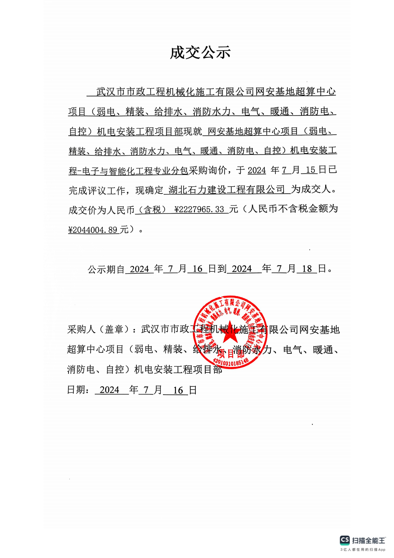 網(wǎng)安基地超算中心項目(弱電、精裝、給排水、消防水力、電氣、暖通、消防電、自控)機電安裝工 程-電子與智能化工程專業(yè)分包采購詢價成交公示成交公示