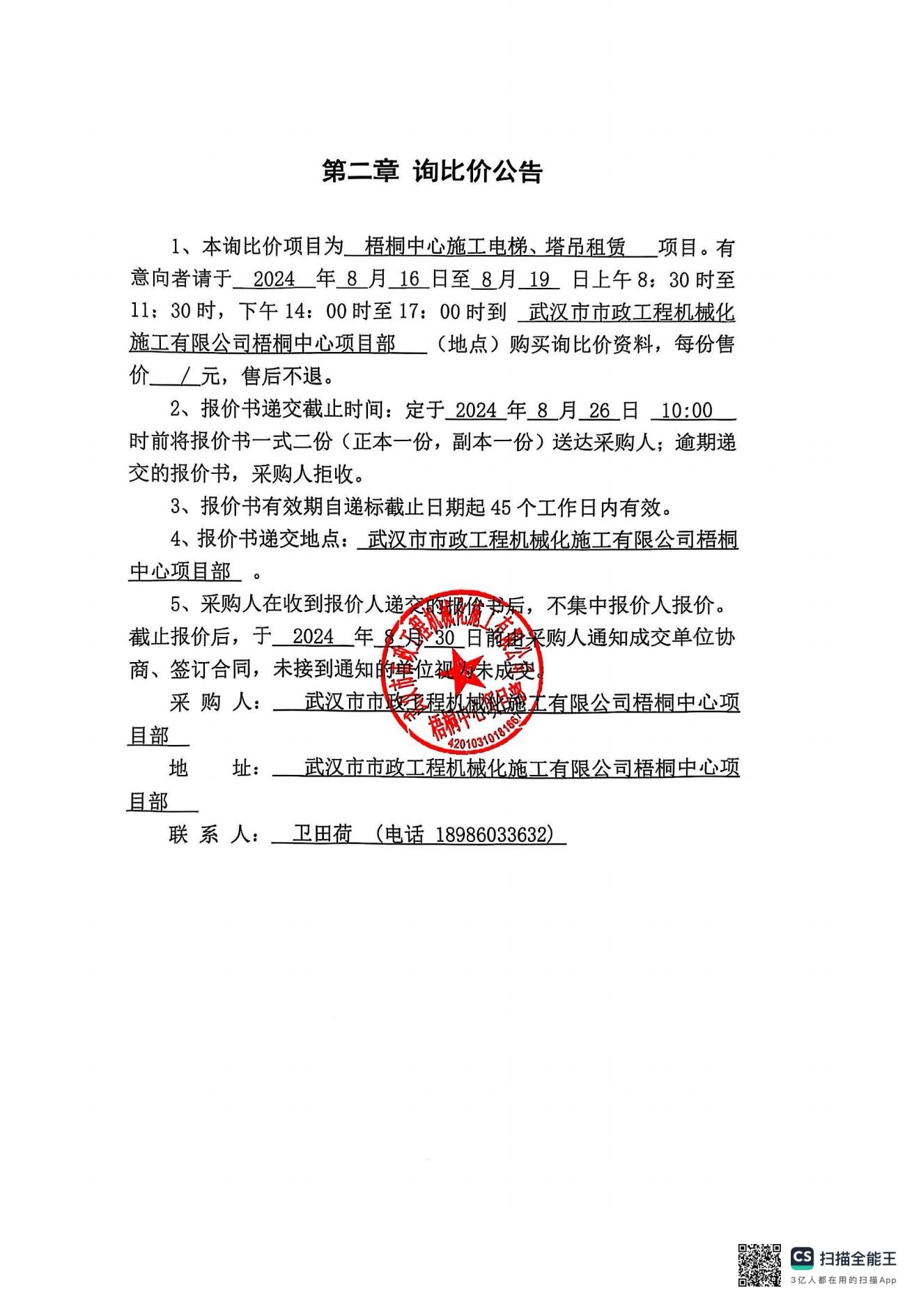 梧桐中心施工電梯、塔吊租賃詢價(jià)公告